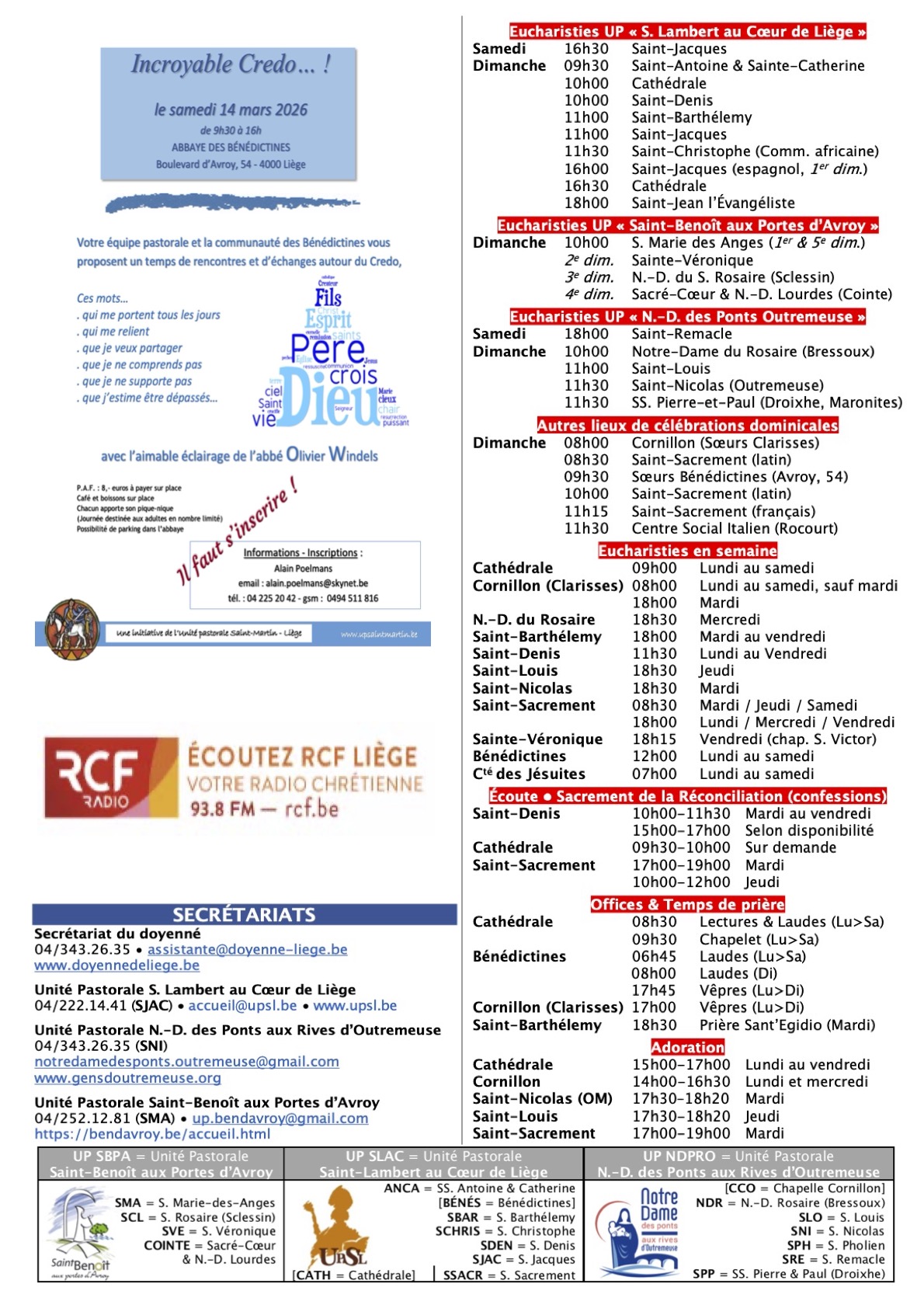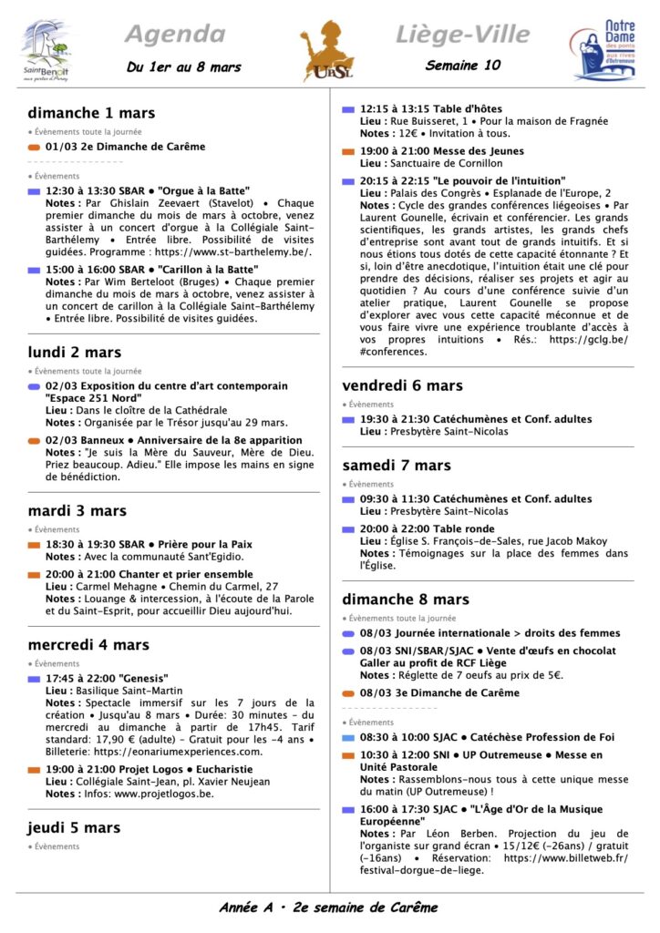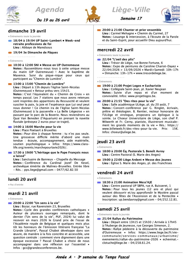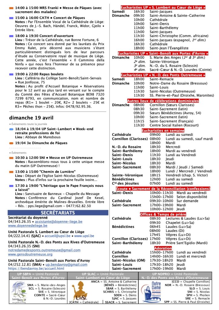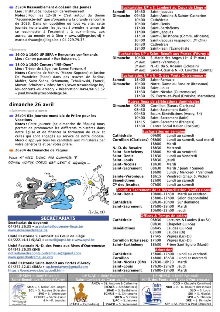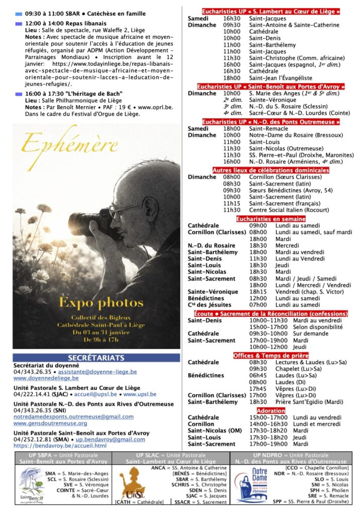 Annonces Liège Centre-Ville & Horaires des Célébrations