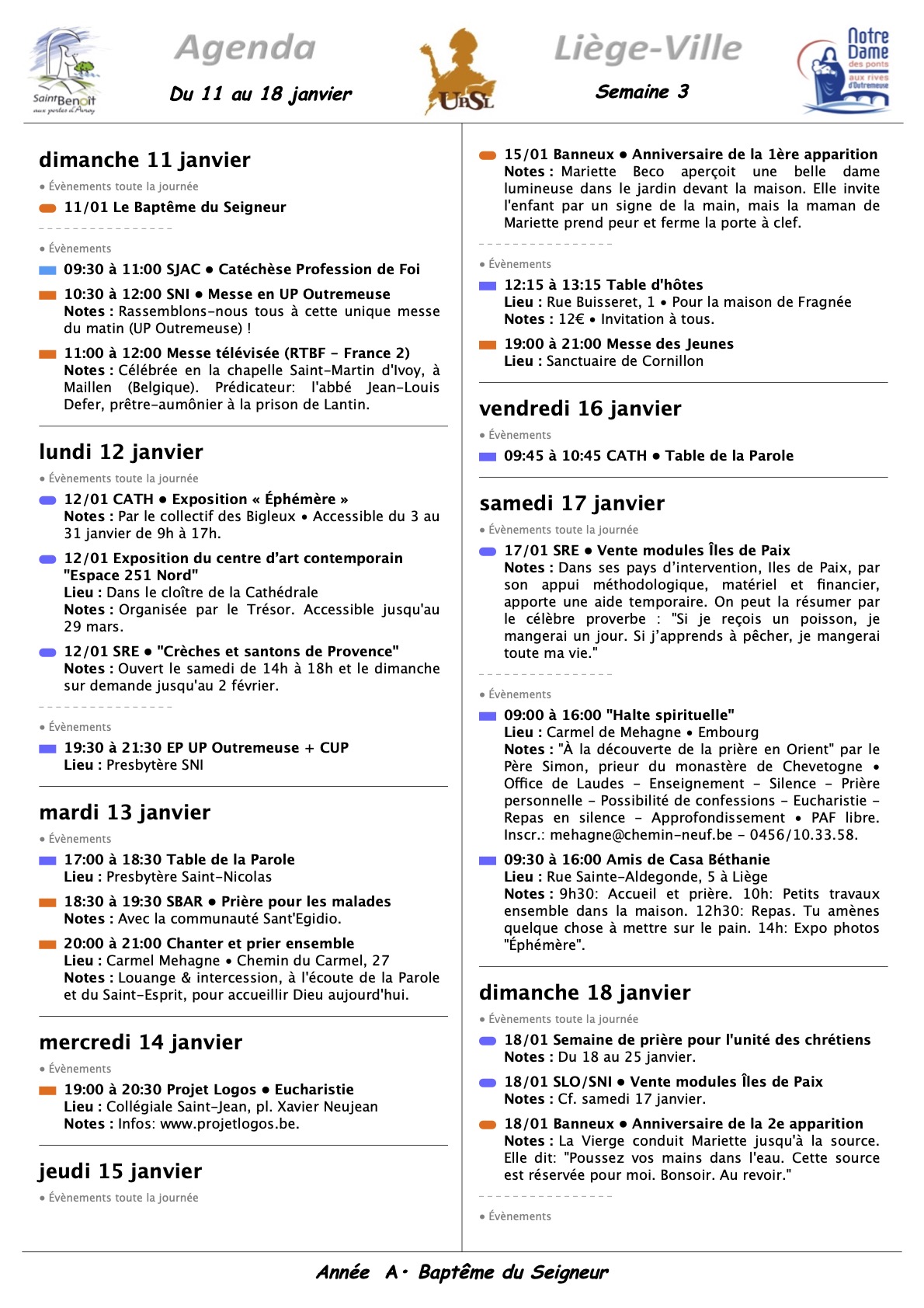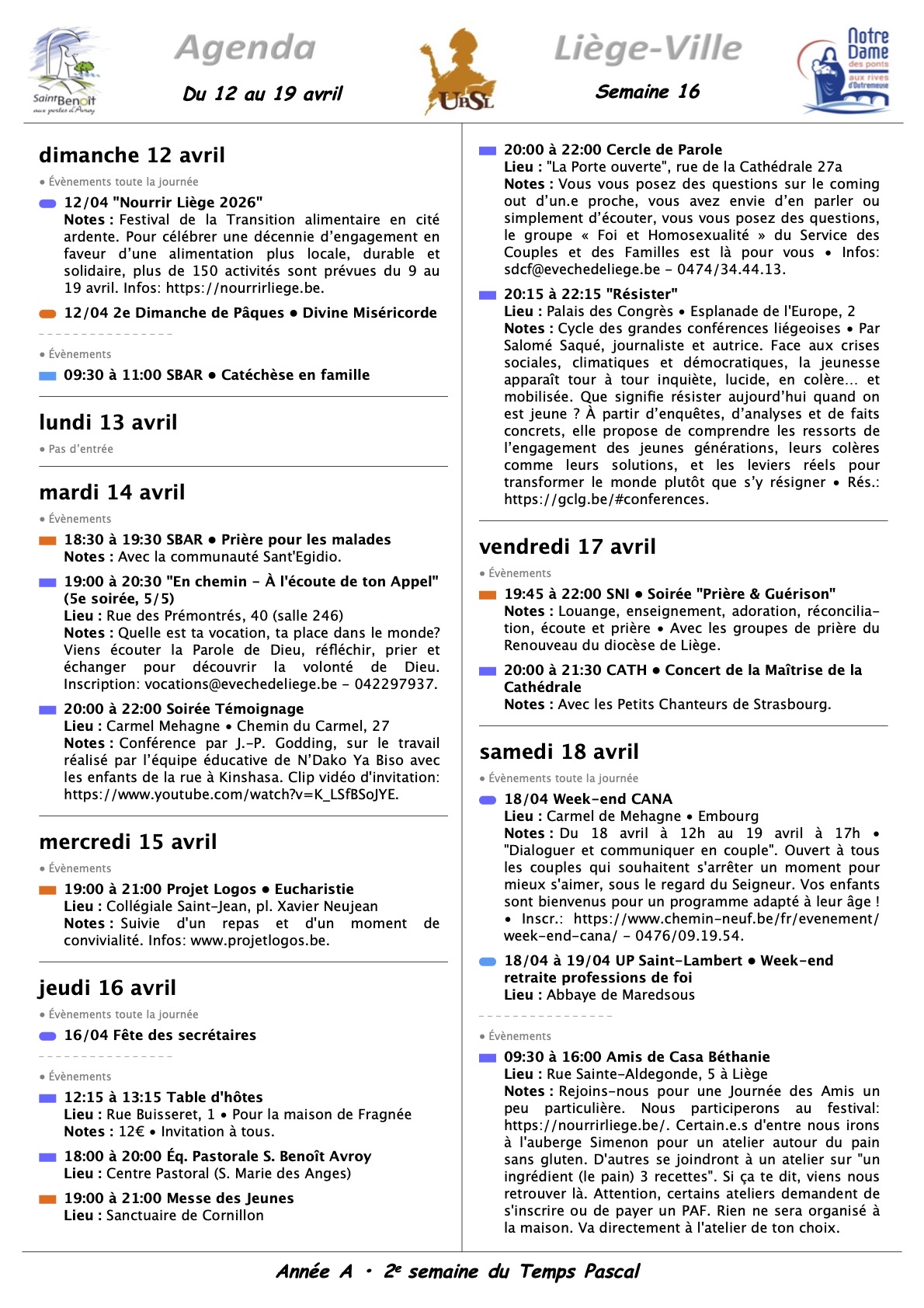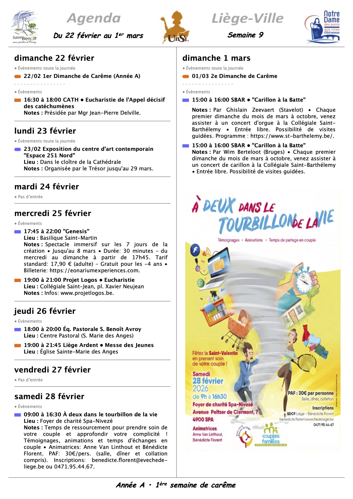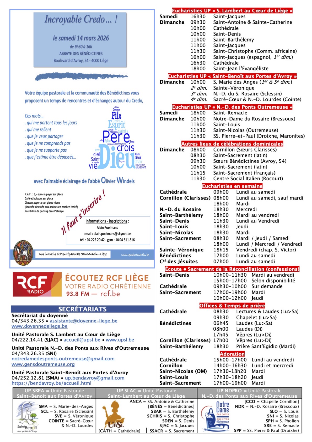 Annonces Liège Centre-Ville & Horaires des Célébrations